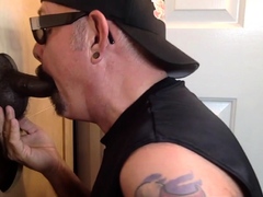 Mature inked DILF enjoys oral pleasing gloryhole partner