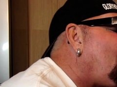 Gloryhole mature DILF blowing and wanking unshaven shaft