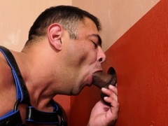 Gloryhole DILF eats cum after deep sucking in homemade job